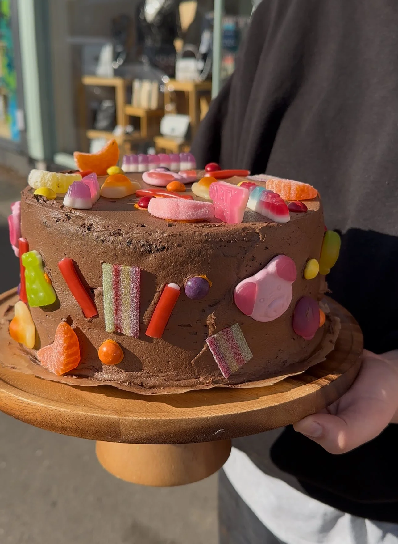 Colin the caterpillar cake speciality hot chocolate! Birthday cake inspired vegan winter treats, with smarties and sprinkles! plant based fun at Pom Kitchen, always vegan!